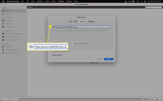 動画のURLをバーに貼り付け、「開く」をクリックします。動画が開き、再生が始まります。
